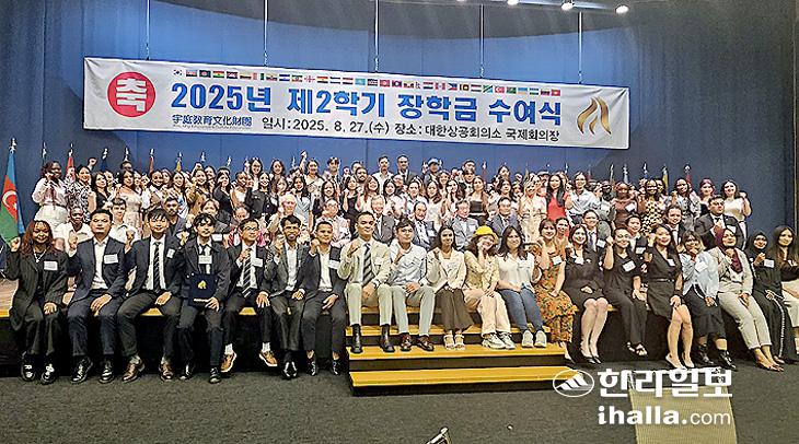 부영그룹 우정교육문화재단(이사장 이중근)은 이날 서울시 중구 대한상공회의소에서 열린 '2025년 2학기 외국인 장학금 수여식'에서 32개국 외국인 유학생 100명에게 장학금 약 4억 원을 전달했다.