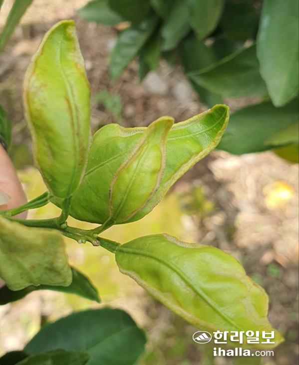 [한라일보] 최근 제주 지역 노지 감귤원에서 볼록총채벌레가 줄어들지 않아 피해 확산이 우려된다.