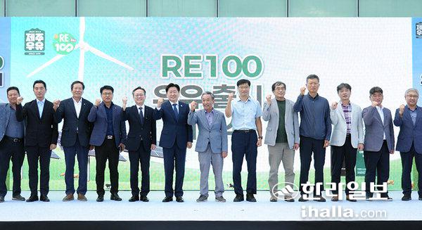 제주특별자치도는 3일 오후 농업회사법인 (주)제주우유에서 RE100 우유 출시 기념행사를 열고 RE100 우유 공식 출시를 선포했다.