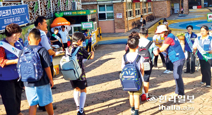 제주특별자치도는 지난 3일 오전 8시부터 아라초등학교 어린이보호구역 일원에서 학교 등하굣길 안전문화운동 캠페인을 전개하고 어린이 교통안전 강화를 위한 안전협의체 현장회의를 개최했다.