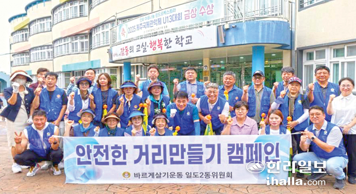 제주시 일도2동주민센터(동장 강경임)와 바르게살기운동 일도2동위원회(위원장 김기호)는 지난 1일 인화초등학교 인근에서 어린이들의 안전한 등굣길 조성을 위한 교통질서 캠페인을 벌였다.