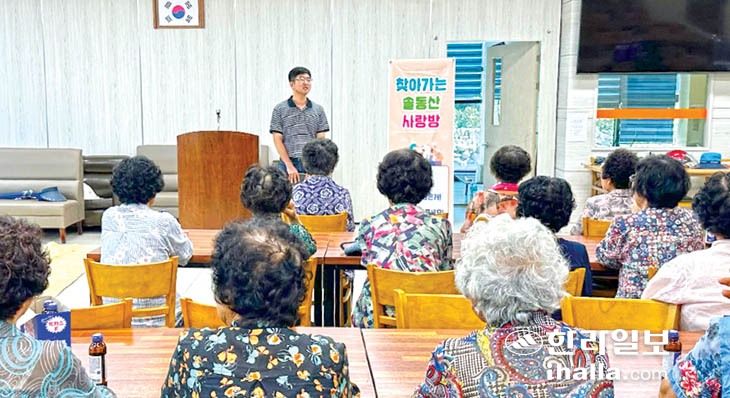 서귀포시 송산동(동장 홍기확)은 지난 3일 보목경로당에서 거동이 불편하거나 정보 취약계층 어르신을 대상으로 '찾아가는 솔동산 사랑방'을 운영했다.