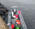 지난 8일 오전 7시 56분쯤 한경면 용수리 해녀탈의장 인근 해안에서 발견된 미확인 고무보트. 독자 제공