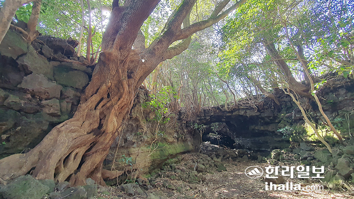북오름 남서쪽에 형성된 북오름굴, 북오름 지명 기원지다. 김찬수 |