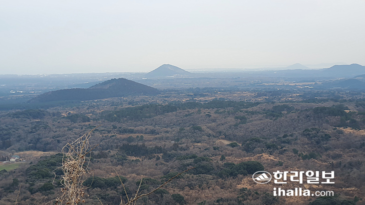 북오름 전경(정면 왼쪽), 웃바메기오름에서 촬영. 김찬수 |