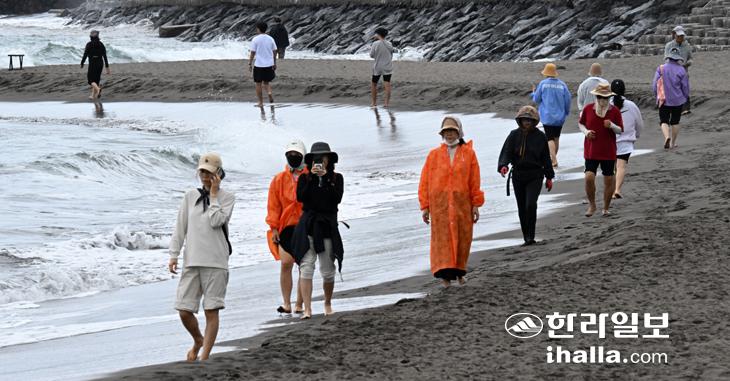 [한라일보] 초가을 날씨를 보인 23일 제주시 삼양해수욕장에 많은 시민들이 나와 맨발 걷기 운동을 하고 있다. 강희만기자