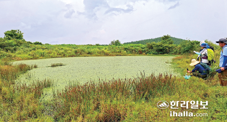 가을 마중 가듯 걷는데 넓은 습지가 펼쳐진다. 수생식물이 가득한 습지를 보며 안내자는 습지의 생물들에 대해 설명 했다. "이 습지는 과거부터 오늘까지 우마들이 급수용으로 쓰여지고 있다"며 습지의 가치에 대해서 설명을 덧붙였다. 용암이 흐르며 판처럼 굳어진 지형은 비가 오면 습지가 되는 용암의 성질에 대해서도 설명했다.