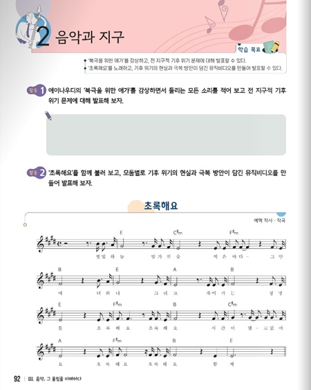 환경문제 주제 노래 ‘초록해요’ 고교 교과서에 실려