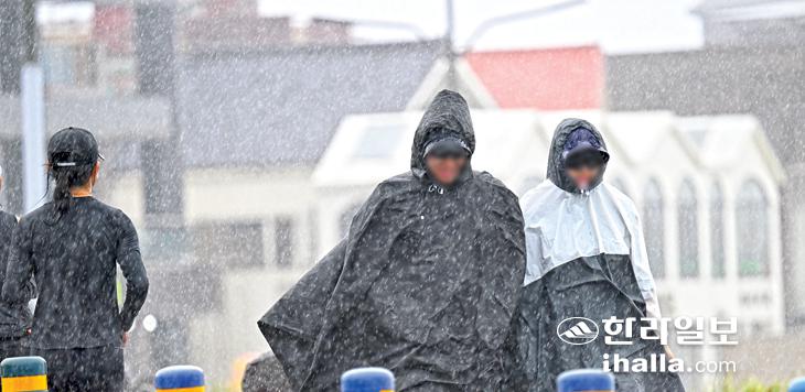[한라일보] 가을비가 내린 15일 제주시 구좌읍 해안도로에서 행인들이 비를 맞으며 걸어가고 있다. 강희만기자
