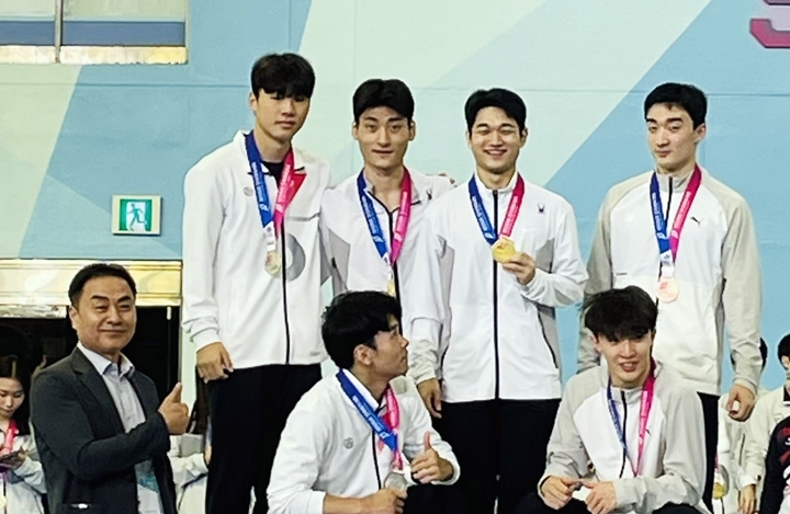 뒷줄 좌측에서 두 번째 김영택(제주특별자치도청), 세 번째 김영남(제주특별자치도수영연맹). |
