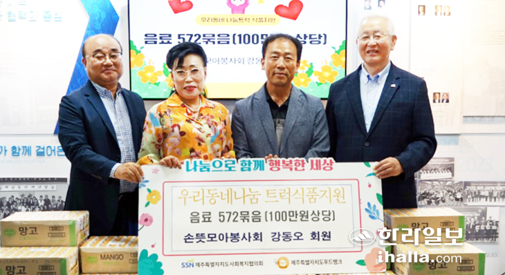 손뜻모아봉사회 강동오 회원은 제주특별자치도사회복지협의회(회장 고승화)에서 운영하는 '우리동네 나눔트럭'을 통해 100만원 상당의 식료품을 전달했다.