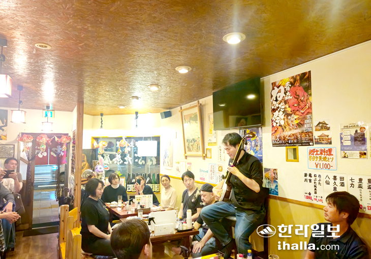 츠가루 샤미센은 쫀득한 소리에 경쾌한 그루브를 지니고 있었다. 점원은 '어떻게 줄이 끊어지지 않는가' 싶을 정도로 빠르고 강한 주법을 구사했다. 손님들의 추임새와 어우러지며 흡사 버스킹 현장에 와있는 느낌이었다.