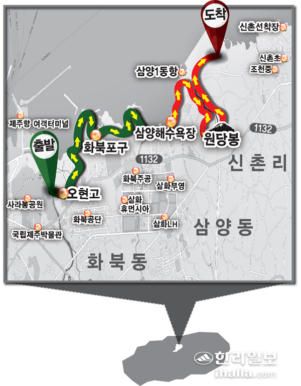 [2025 제주섬 글로벌 에코투어] (7)곤을동4·3유적지~화북환해장성~화북포구~삼양포구~삼양검은모래~삼양선사유적지~원당봉 정상~불탑사~남생이못~닭머르(12.2㎞)