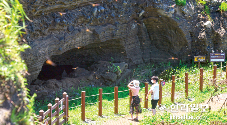 고요한 위엄을 자아내는 해안 절벽 길을 따라 걷다 보면 수월봉의 진가가 또렷해진다. 전설 속 누이 '수월'과 동생 '녹고'의 이야기를 품은 '녹고의 눈물'은 그 길에 서사를 더한다. 해안 절벽 곳곳에 박혀있는 다양한 크기의 무수히 많은 화산탄은 과거 수월봉의 화산 활동이 얼마나 격렬하게 일어났는지 짐작케 한다.
