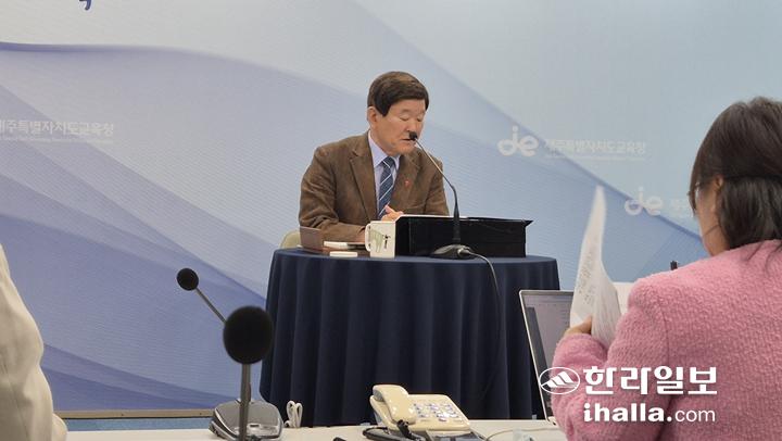 김광수 교육감은 3일 도교육청 기자실에서 기자간담회를 갖고 '2026년도 교육비특별회계 예산안'을 편성해 지난달 31일 제주특별자치도의회에 제출했다고 밝혔다.