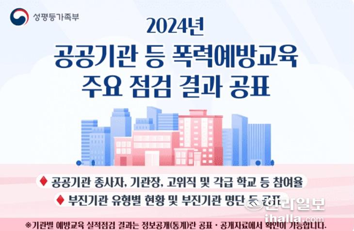 성평등가족부, 전국 공공기관 성희롱 예방교육 등 실적 점검 공표