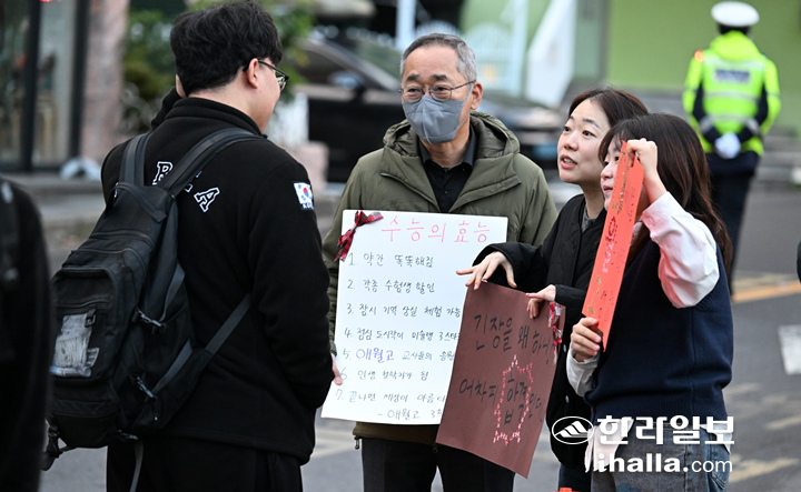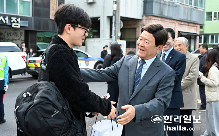 김광수 제주자치도교육감은 이날 95지구 제2시험장인 제주제일고를 찾아 수험생과 교사, 학부모 등을 격려했다.
