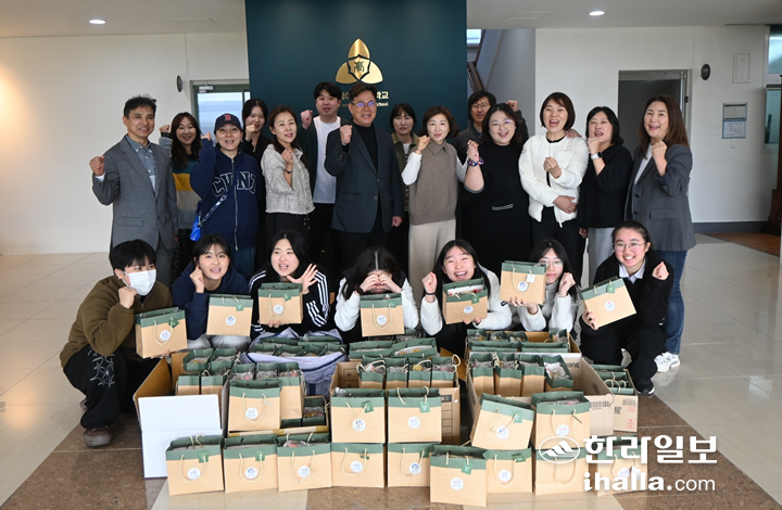 | 12일 대정여고 학부모회가 수능 응원 물품을 전달했다. 제주도교육청 제공 |