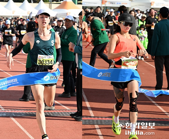 [한라일보] 역대 최대 규모로 치러진 2025제주국제감귤마라톤 풀코스 우승은 고성민(충남 아산시)·김유진(나주빛가람달리기)에게 돌아갔다.