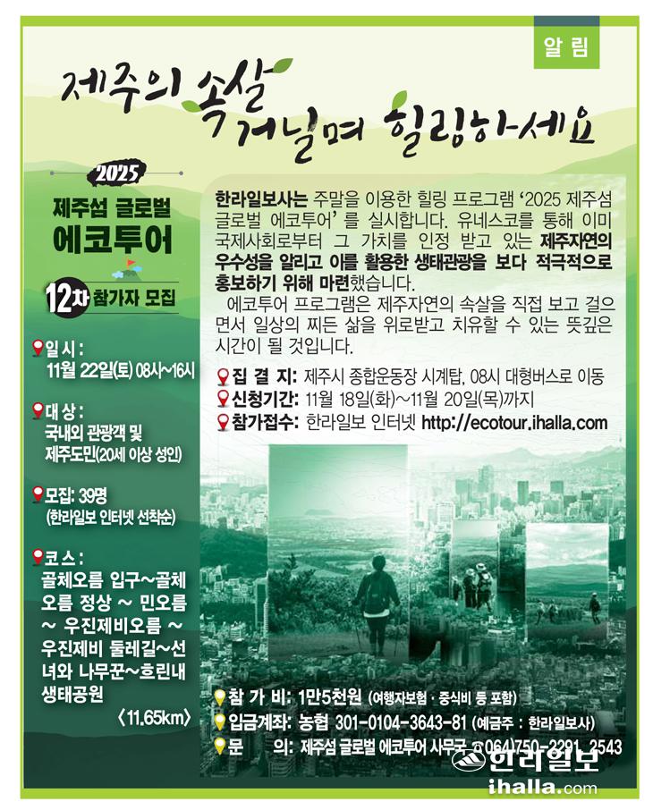 [알림] '2025 제주섬 글로벌 에코투어' 11차 참가자 모집