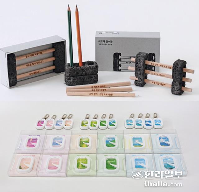 2025 대한민국 관광기념품 박람회 참여 업체 출품작. 사진 위 어드레감수꽝, 아래는 제주 비행기 마그넷·키링. 제주도 제공