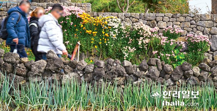 [한라일보] 19일 제주시 한림읍 수원리 도로변 주택가 담장에 국화가 만개해 깊어가는 가을을 실감하게 하고 있다. 강희만기자