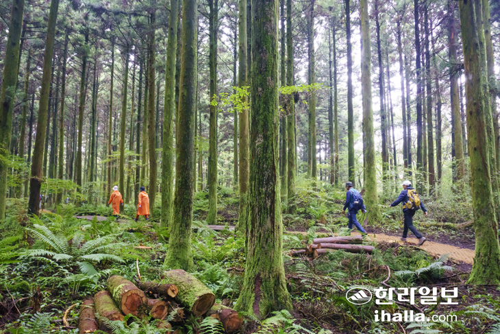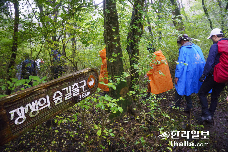[한라일보] 지난 10월 25일 '2025 제주섬 글로벌 에코투어'가 아홉 번째 발걸음을 내디뎠다. 이번 코스는 절물자연휴양림에서 시작해 장생의숲길과 한라산둘레길 9구간을 거쳐 노루생태관찰원까지 이어지는 여정이었다. 가을비가 촉촉하게 내리는 아침, 절물자연휴양림에서 탐방이 시작됐다.