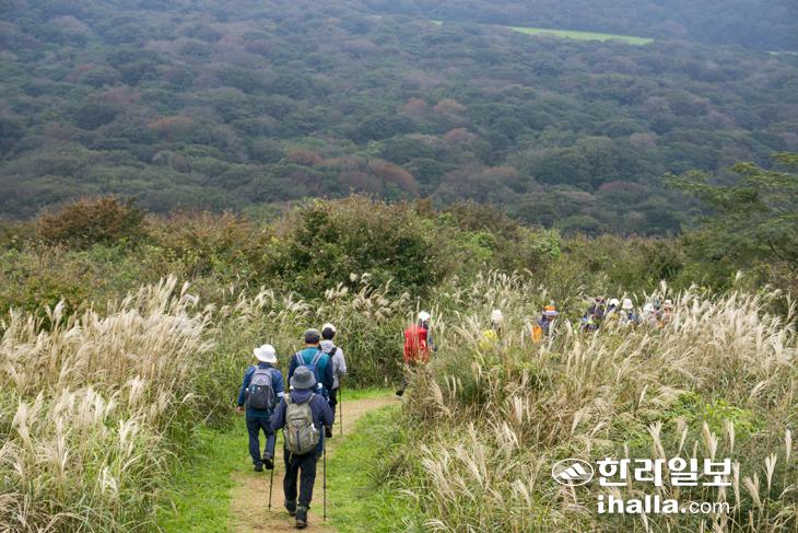 데크 길을 벗어나 족은대나오름(작은절물오름)을 향해 걸음을 옮겼다. 족은대나오름은 높이 657m로 큰대나오름(큰절물오름)보다 약 40m 낮다. 빨갛게 익은 팥배나무 열매가 마치 레드카펫처럼 깔려 가을 정취를 물씬 풍겨내고 있었다. 안개가 짙게 끼어 주변 경치는 잘 보이지 않았지만 오히려 신비로운 분위기를 마음에 품고 내려왔다. 큰대나오름에 올라서도 여전히 안개 때문에 시야가 제한적이었다. 날이 맑았다면 한라산을 비롯해 크고 작은 오름들이 파노라마처럼 펼쳐졌을 테지만 그럼에도 시원한 기운이 온몸을 감싸 기분만큼은 상쾌했다.