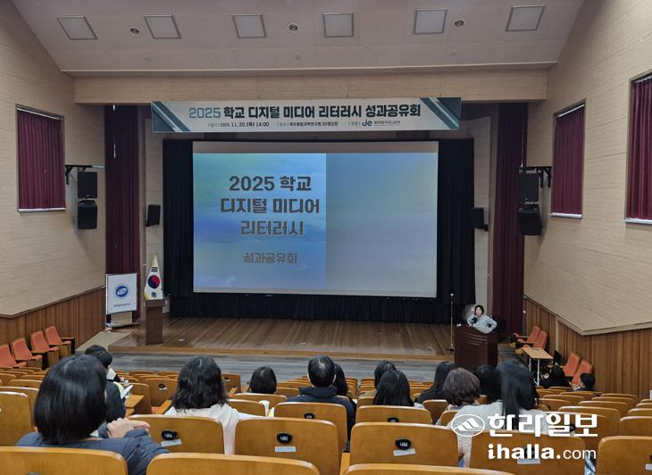 제주특별자치도교육청은 학생들의 미디어 비판 능력과 활용 역량 강화를 위해 '2025 학교 디지털 미디어 리터러시 성과공유회'를 지난 20일 제주융합과학연구원에서 개최했다. 도내 초·중학교 교사들이 대거 참여한 가운데 학교 현장에서 쌓아 온 다양한 수업 사례를 공유하고 향후 교육의 방향성을 모색하는 시간이 이어졌다.