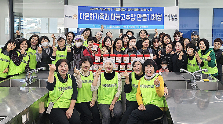 칠십리로타리클럽(회장 한순자)은 지난 22일 동홍동삼다복지회관에서 회원 및 다문화 가족 50여 명과 함께 '다문화와 함께하는 마늘고추장 체험'을 진행했다.