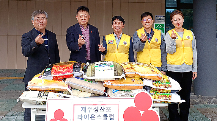제주성산포라이온스클럽(회장 박명종)은 지난 24일 성산읍(읍장 김경범)을 방문해 이웃돕기 물품으로 쌀 220㎏을 기탁했다.