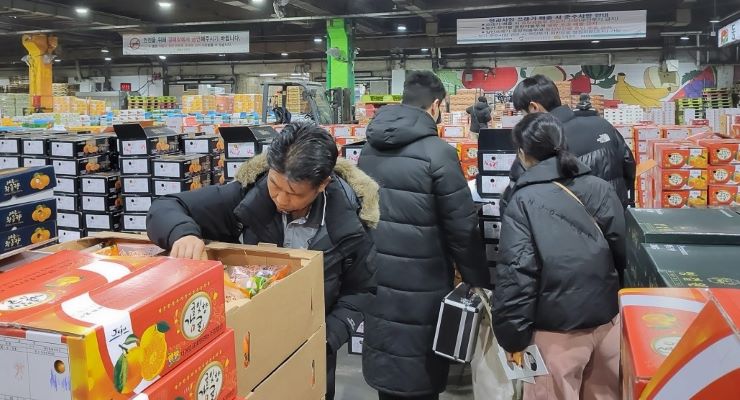 서귀포시는 지난달 29일 서울 가락동 농수산물도매시장을 불시 단속해 4곳 선과장이 유통한 상품외감귤 1.2t을 적발했다. 서귀포시 제공