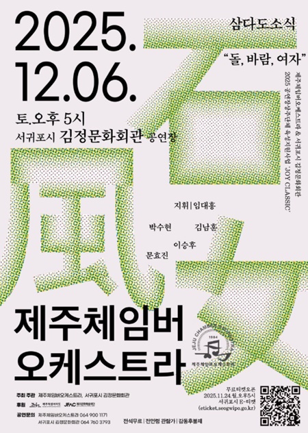 이번 공연은 2025년 김정문화회관 상주단체 육성지원사업의 마지막 무대로, 제주지역 작곡가와 편곡가들이 참여해 '제주의 돌·바람·여자'를 주제로 창작한 곡들을 들려준다. 작곡가 박수현의 '제주의 돌·바람·여자', 이승후의 '제주도의 사계 중 '겨울'', 김남훈의 '삼다도 소식'과 '제주도의 푸른 밤', 문효진의 '오돌또기+느영나영' 등 제주 정서를 담은 작품들이 제주체임버오케스트라의 연주로 선사한다.