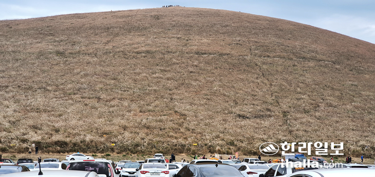 [한라일보] 새별오름, 제주시 애월읍 봉성리에 있다. 표고 519.3m, 자체 높이는 119m 정도다. "저녁 하늘에 샛별과 같이 외롭게 서 있다 해 붙여진 이름이다." 제주도가 발행한 제주의 오름이라는 책에 나오는 설명이다. 외롭게 서 있다니, 거의 붙어 있는 이달오름은 오름이 아닌가? 주변을 둘러보면 동쪽으로부터 시계방향으로 북돌아진오름, 동물오름, 폭낭오름, 왕이메, 괴수치, 돔박이, 당오름, 정물오름, 밝은오름, 누운오름 등 한 바퀴 빙 둘러서 오름들이 있다. 외롭지 않다.