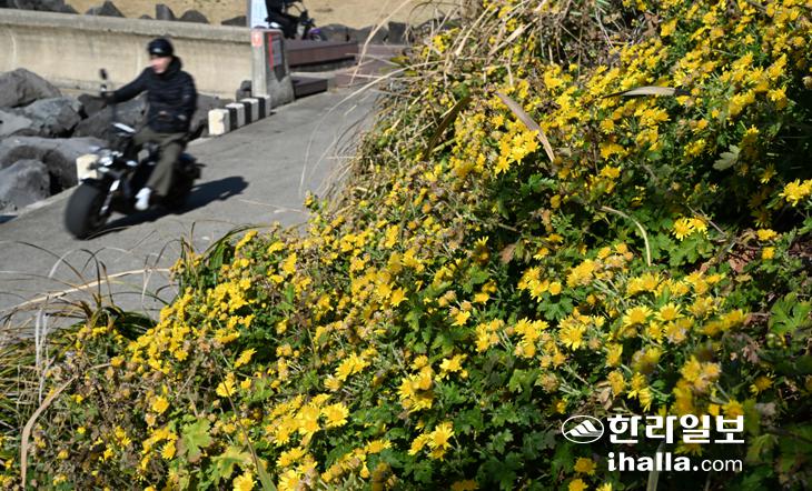 [한라일보] 9일 제주시 한경면 고산리 수월봉 해안가에 들국화가 뒤늦게 만개해 눈길을 끌고 있다. 강희만기자