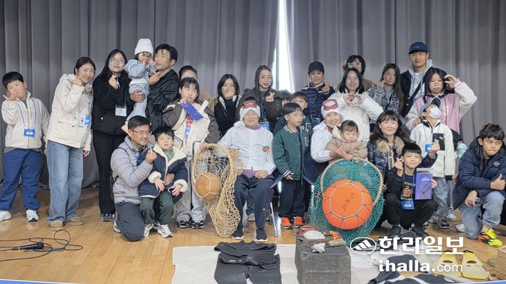 지난달 열린 제주도립 해녀박물관의 '해녀를 만나다' 프로그램 참가자들이 기념사진을 찍고 있다. 제주도 제공