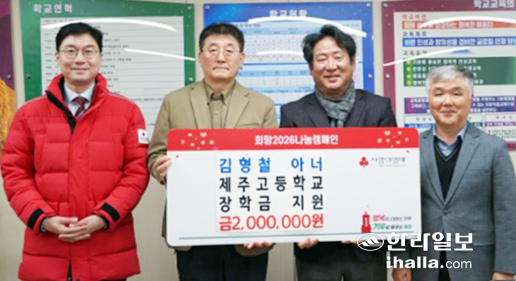 김형철 대명콘크리트 대표(제주 아너 소사이어티 119호 회원)는 최근 제주고등학교(교장 양용혁)를 방문해 학생들을 위해 사용해 달라며 제주사회복지공동모금회(회장 강지언)와 함께하는 아너 소사이어티 장학금 200만원을 기탁했다.