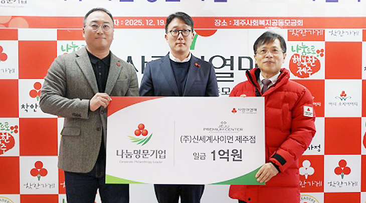(주)신세계사이먼(대표 김영섭)이 지난 19일 제주사회복지공동모금회(회장 강지언)의 제주 20호 나눔명문기업으로 가입했다.