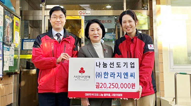 (주)한라지엔씨(대표이사 김혜란)는 지난 18일 일도1동주민센터를 방문해 올해를 마무리하며 총 2025만원의 성금을 제주사회복지공동모금회(회장 강지언)에 기탁했다.