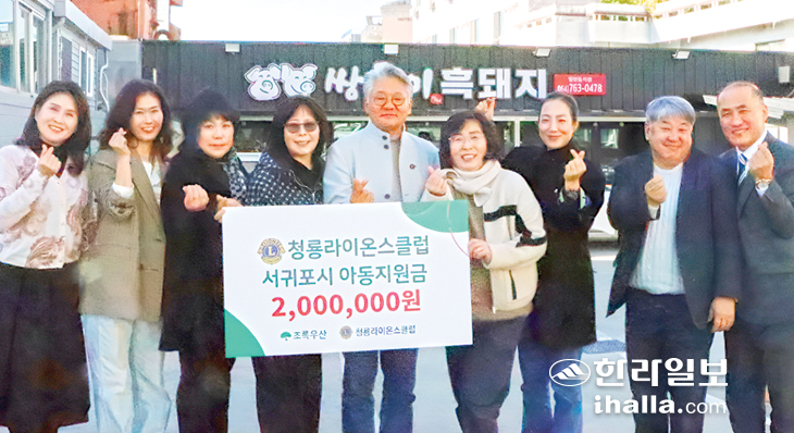 초록우산 제주지역본부(본부장 김희석)는 지난 22일 서귀포청룡라이온스클럽(회장 문영옥)으로부터 아동지원금 200만원을 전달받았다.