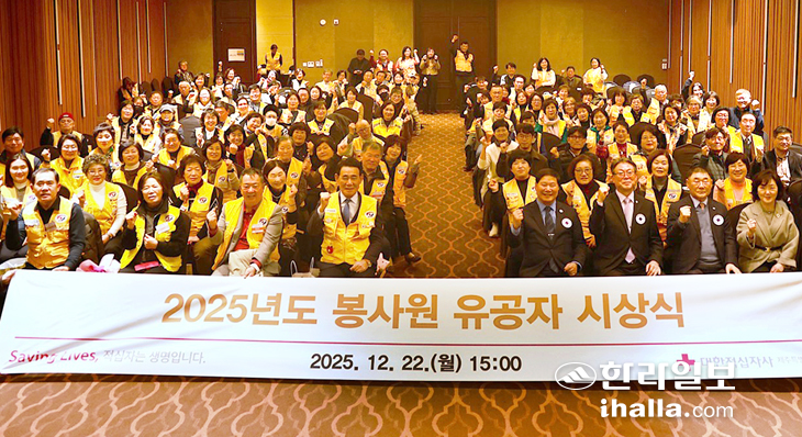 대한적십자사제주특별자치도지사(회장 정태근)는 지난 22일 그라벨호텔 제주에서 적십자 봉사원 등 150여 명이 참석한 가운데 '2025 적십자 봉사원 유공자 시상식'을 개최하고 봉사원 110여 명에게 표창을 수여했다.