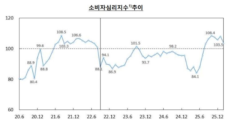 이달 소비자심리지수 103.5... 전월대비 4.5p 하락