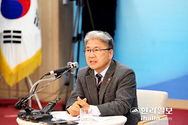 제주 제2공항 환경영향평가의 객관적 평가를 위해 올해 상반기 중으로 '정보공개 자문단'의 검토 결과를 공개하고, 제주4·3에 대한 왜곡과 폄훼를 막기 위해 '역사 왜곡 처벌 조항'이 담긴 '4·3특별법' 개정안이 조속히 통과될 수 있도록 노력하겠다고 밝혔다. 다음은 주요 인터뷰 내용.