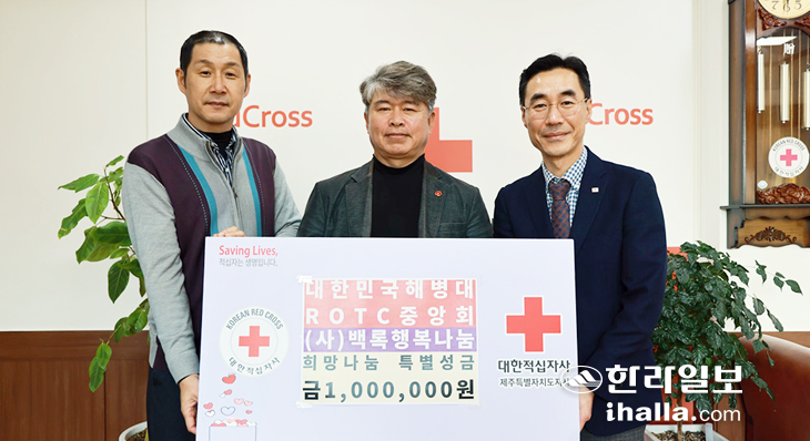 (사)백록행복나눔(회장 고지수)은 최근 대한적십자사제주특별자치도지사(회장 정태근)를 방문해 소외된 이웃을 위한 희망나눔 특별성금 100만원을 전달했다.