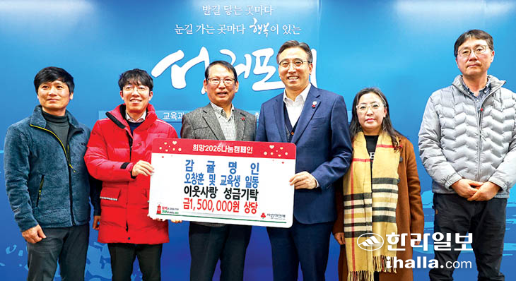 서귀포시 레드향 명인 오창훈 씨와 교육생 일동은 지난달 31일 서귀포시청에서 연말연시 이웃돕기 성금으로 150만원을 제주사회복지공동모금회에 기탁했다.