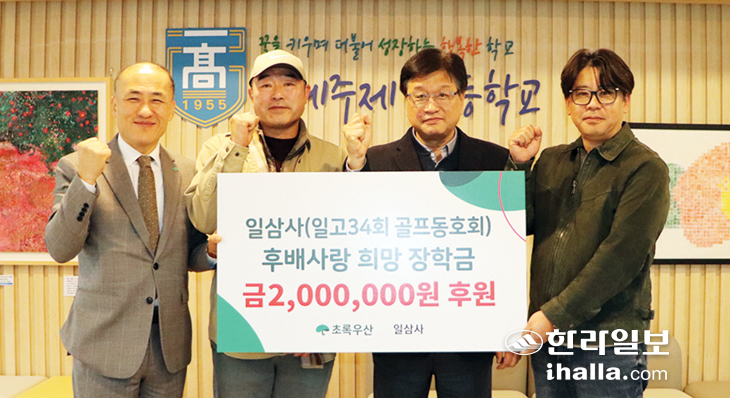 초록우산 제주지역본부(본부장 김희석)는 지난해 12월 30일 제주제일고 34회 골프동호회(회장 김성태)로부터 후배사랑 희망 장학금 200만원을 전달받았다.