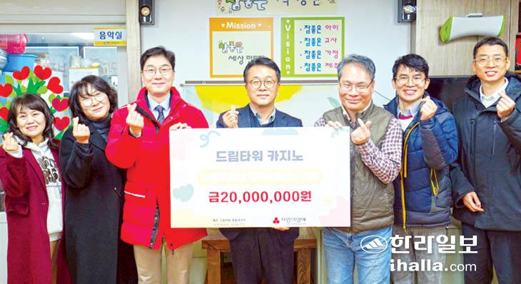 [한라일보] 제주드림타워 카지노(대표 김한준)는 지난 2일 참좋은지역아동센터에서 이웃사랑 성금 2000만원을 제주사회복지공동모금회(회장 강지언)에 기탁했다.