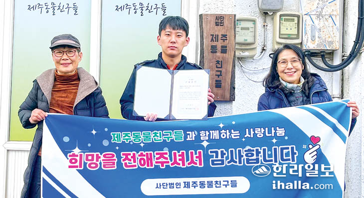 제주소방서 소속 강수종 소방사는 5일 100만원을 도내 동물보호단체인 '제주동물친구들'에 기부했다.