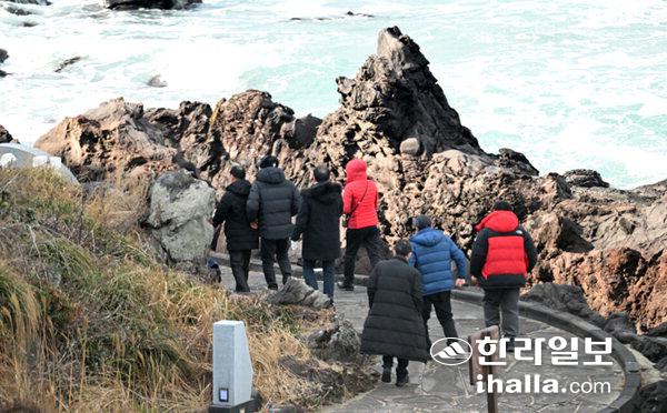 [한라일보] 겨울철 한담해변의 매력12일 제주시 애월읍 한담해안산책로를 찾은 관광객들이 제주의 겨울 바다를 만끽하고 있다. 강희만기자