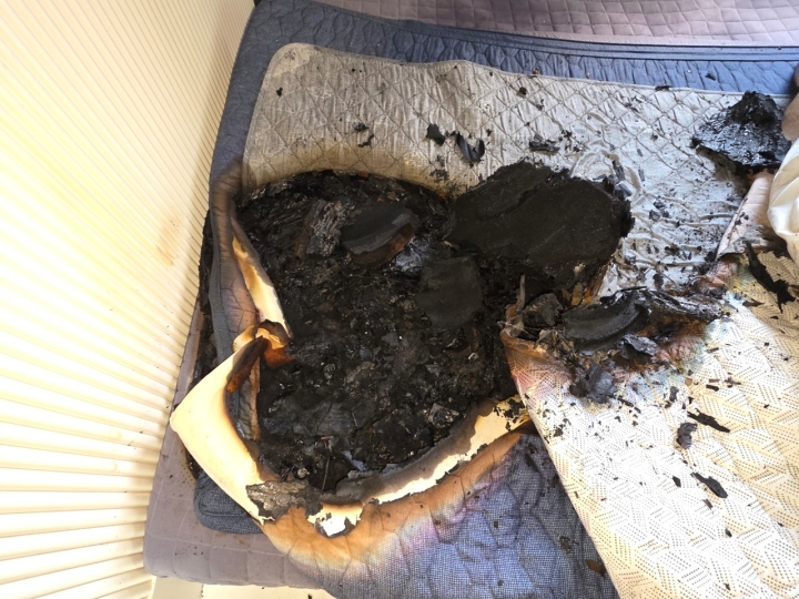 현장에 도착한 소방은 매트리스 위 전기장판이 불에 타고 있는 것을 확인해 진압했다.